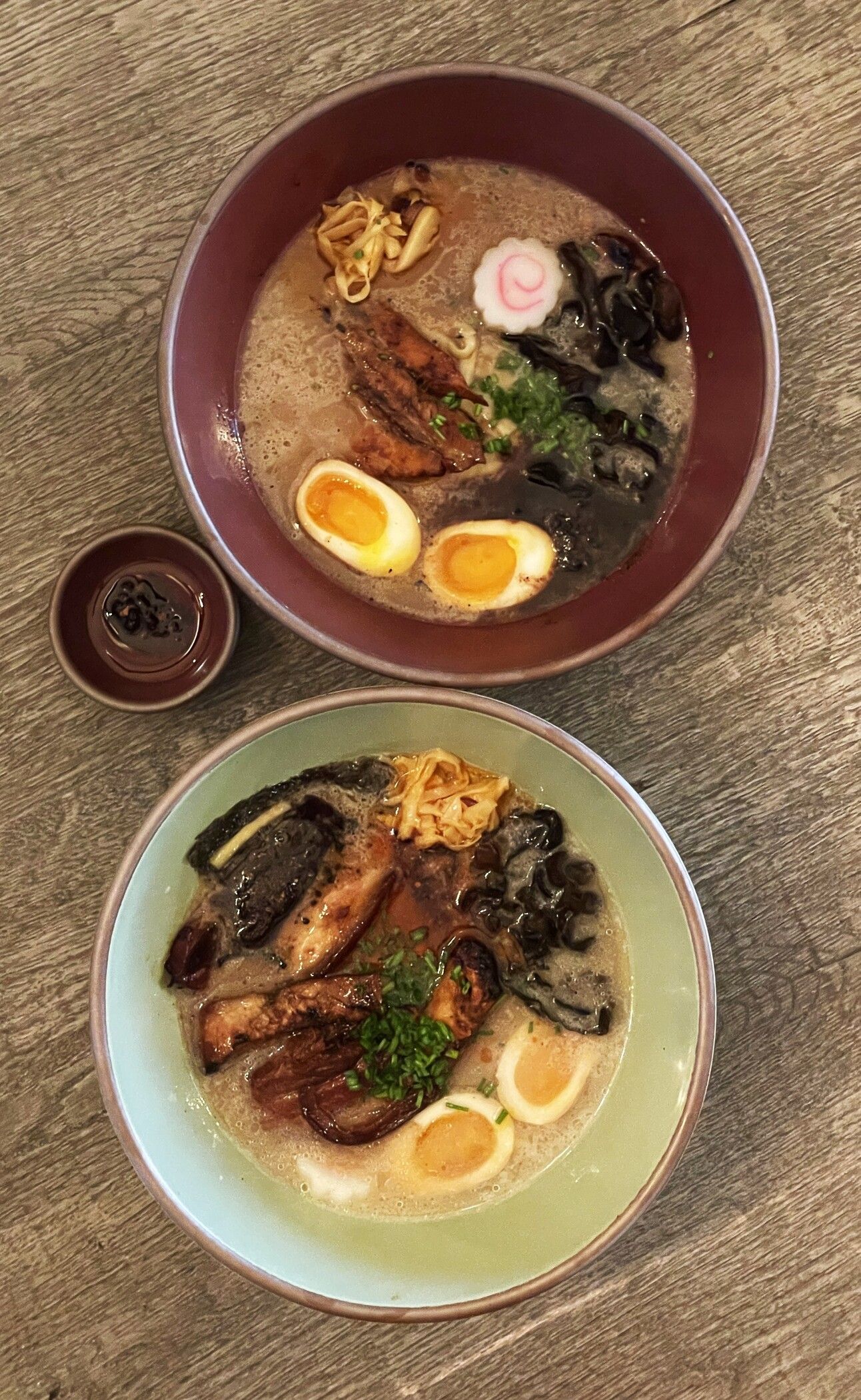 Several years ago, Jonathan Menjivar-Lopez gave me a Japanese Ramen cookbook for Christmas and I learned it takes 2 days to prepare the broth, tare, and chashu pork. I set the book on the shelf and decided I would make ramen one day, but not today. Fast forward to now and I did it! It took several trips to the store, but I couldn’t find sodium carbonate for the noodles. I found that if you put baking soda (sodium bicarbonate) in the oven, the carbon bond breaks and make sodium carbonate. Add that to water and you’ve got kansui, the ingredient that gives ramen noodles a yellow tint. This was a lot of work but I think it will be a new annual holiday tradition. |